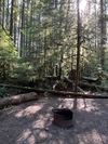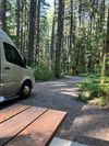 Even though we need power for our camper van we decided to spend a night without in this Vancouver Island interior park. The tall trees and mossy ground felt like a magical world. It was the ideal location with good separation from others. Very close to the sandy beach we went swimming in the chilly waters at the beautiful lake. Not a lot of kids because it was June. The towering trees kept the site shady and peering into the woods around made the experience feel like a quiet forest scene.