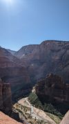 The next day we had Angel's Landing and the Narrows on the agenda. Even though we were only about 500 ft from the main parking lot, we barely got a spot at 7am. The shuttle line was already getting long, but since we were willing to stand and were only 2 people we got to skip ahead. We were lucky enough to get an Angel's Landing permit for before 9am. That was an incredible experience. Even just the hike to Scouts and back down would be worth it.